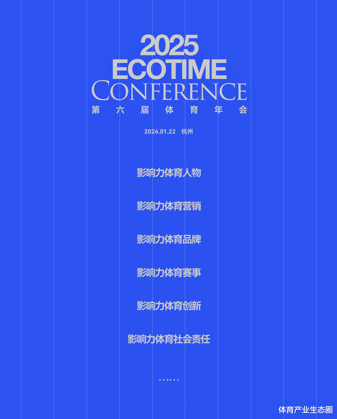 第六届ECOTIME体育年会将于2026年1月22日在杭州举行。