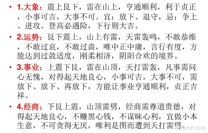 举例来说,假设一个人在工作中遇到了一项重要的决策。在这种情况下,他应该综合考虑各种因素,不要过于冲动和急躁,而是应该逐步推进,谨慎决策。此时,他应当遵循小过卦的原则,处理一些小事情,积累经验和信心,然后再逐渐处理更大的事务。