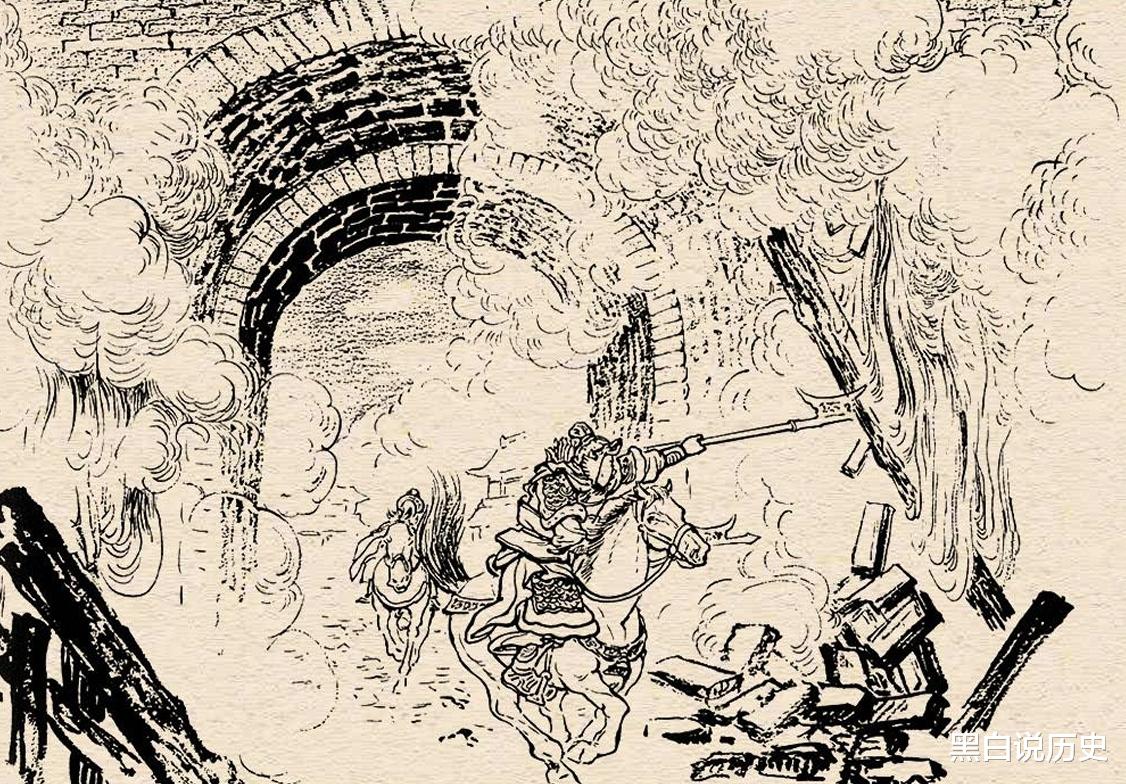 不久后,在濮阳城内,曹操中了陈宫火攻之计,烈焰焚城。又是典韦,冒着浓烟烈火,一路拼杀寻觅曹操。