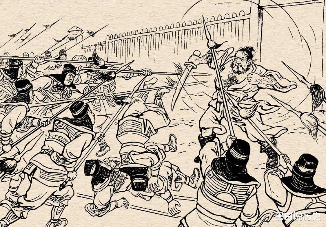 营门外,张绣军长枪如林,寒光闪闪。身无片甲的典韦,独守寨门!他挥舞腰刀,奋力砍杀二十余人。刀口卷刃崩坏,他竟弃刀不用,双手抓起两具敌兵尸体作为兵器,又砸死八九人!