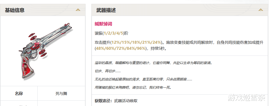 接下来是小土豆的双枪死与舞,抢人家大狙玩说是,因为与嘉贝莉娜需要的声骸重击词条不太合适,所以跟专武差距比较大。再次选林间的咏叹调,停驻之烟,差距都基本在20%左右,毕竟嘉贝是热熔大C,还是抽个专武好哦。