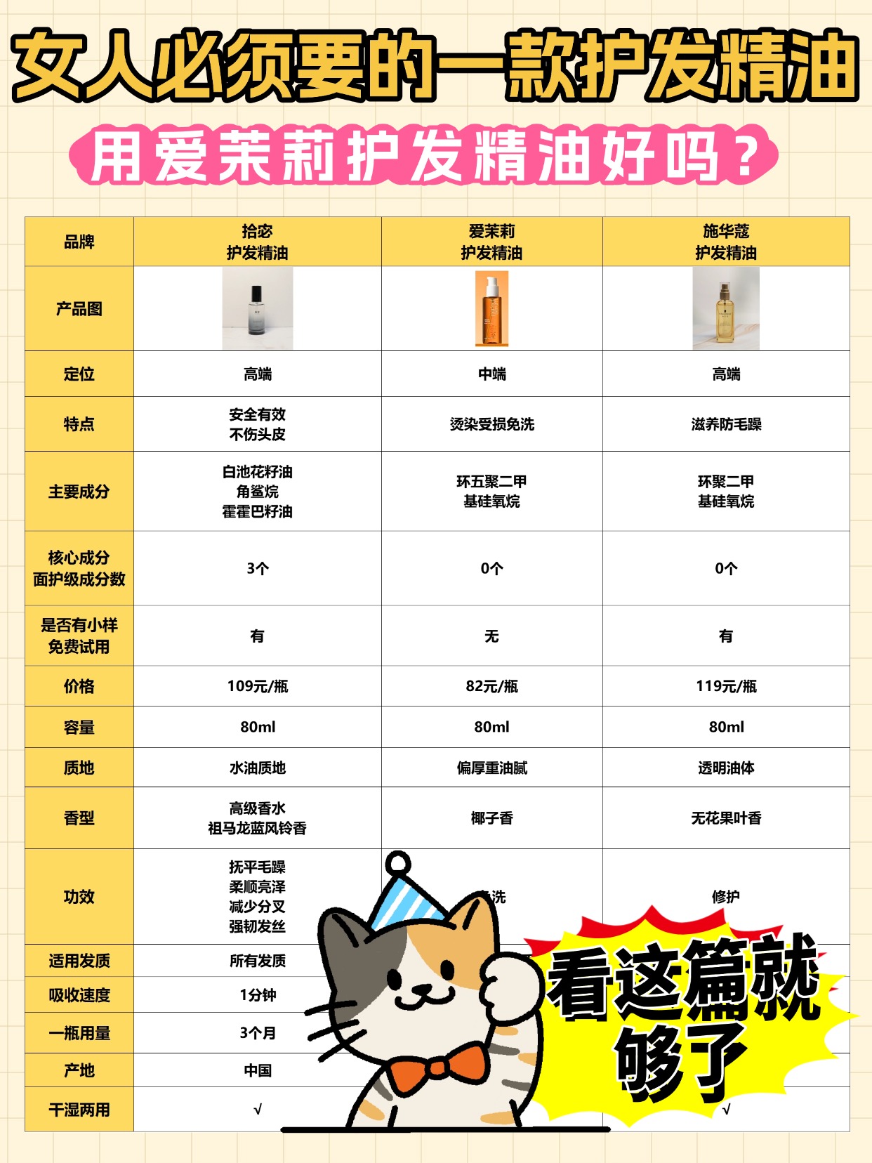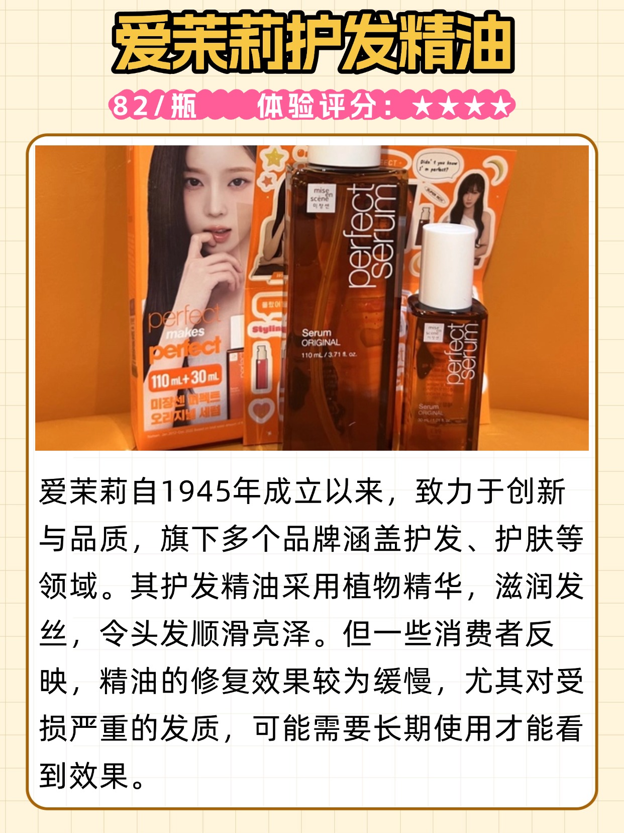 很多人问我爱茉莉护发精油的效果如何,是否值得购买。爱茉莉的这款精油在滋润干枯发质上有一定的效果,尤其是在修复受损发丝和控制毛躁方面,还是有不错的表现。它的质地相对清爽,不容易让头发变得油腻,适合大多数发质,尤其是中性到干性的发质。但如果你是极油发质,可能还是要谨慎使用,避免过度滋润导致油腻。总的来说,爱茉莉的这款精油在护发市场上占有一席之地,效果因人而异。如果你在选购时不确定,可以参考我挑选护发精油的一些小窍门,选对了才是最重要的。