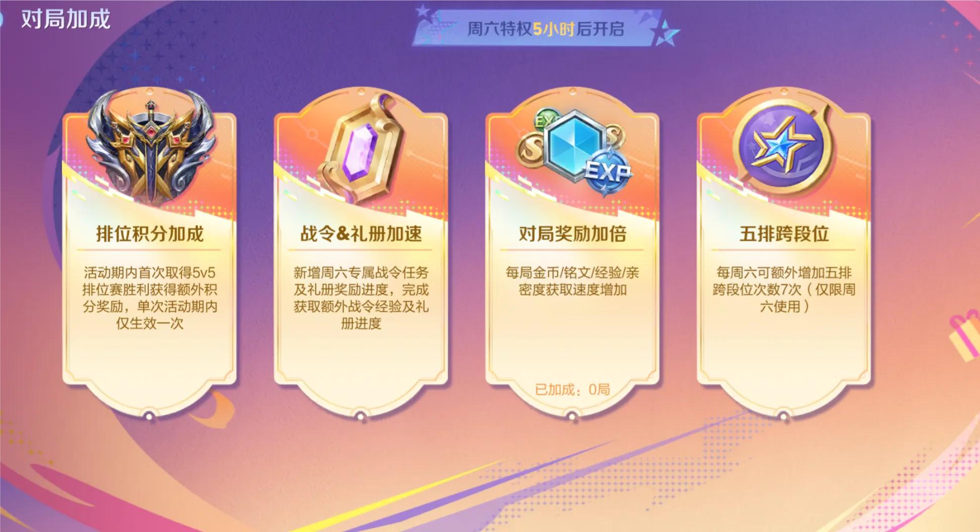往后,周末的“超级星期六”将成为最佳冲分期。不仅匹配机制会优先同段位玩家,系统还会随机触发双倍积分时段。想要快速上分的玩家,务必在周六14:00-18:00黄金时段组队出击!