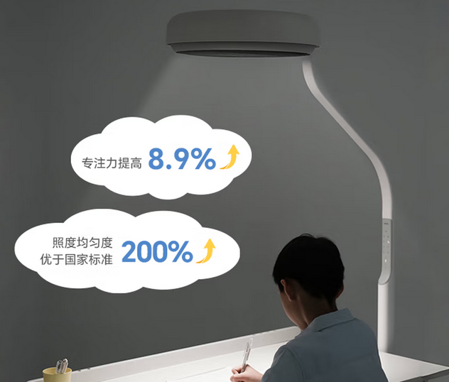 这款灯采用首尔Sunlike灯珠,配紫光激发技术,光谱连续性优异。同时内置环境光感应器,支持上下光源独立控制,兼顾护眼功效与全年龄段使用便捷性,且承诺12年教室级光照品质。
