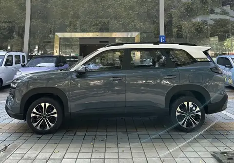 车身侧面,平直的车顶线条为车内空间预留充足余地,17英寸多辐式轮毂搭配黑色轮眉,硬派气息扑面而来,车窗下沿的镀铬饰条则增添了一丝精致感。车尾部分,采用竖向排列的LED尾灯,与前脸大灯形成呼应,外挂式备胎的设计进一步强化了越野属性,下方厚重的保险杠与银色护板形成统一风格,整体外观兼顾硬朗与实用。