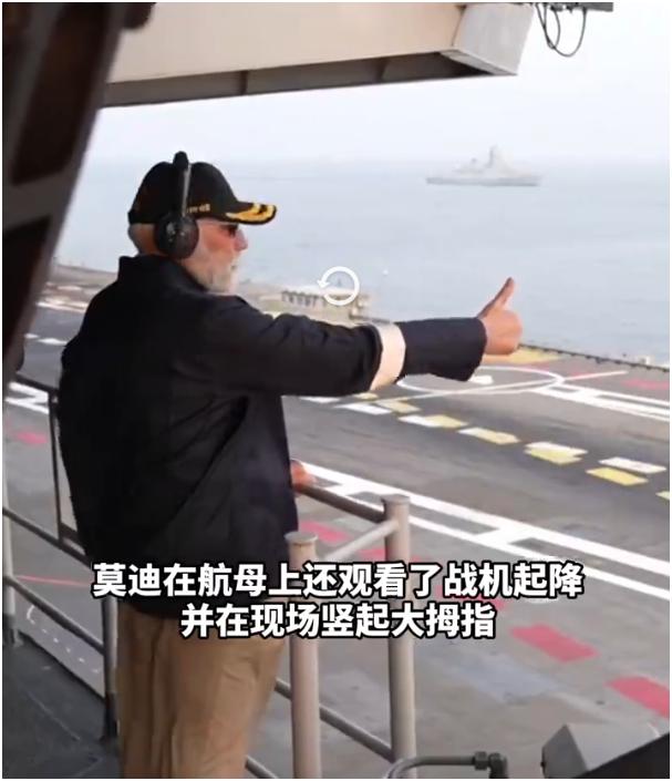 莫迪还和航母上的武装部队一起摆造型合影,还一起演唱了一首原创战歌《卡萨姆·辛杜尔》,纪念2025年5月印巴冲突中的“辛杜尔行动”。