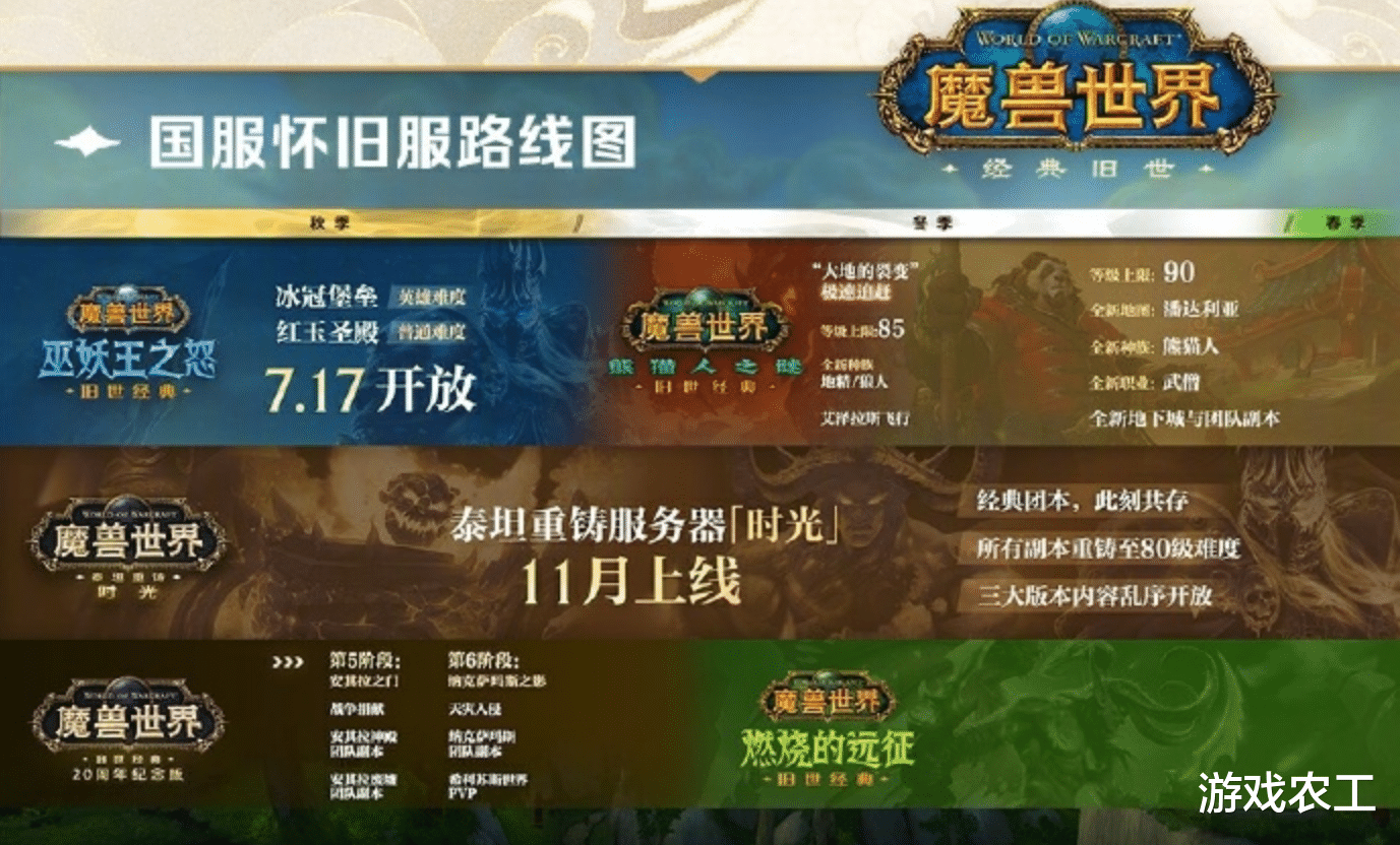 其次,我们仔细看公告会发现,时光服11月开放,而魔兽世界MOP怀旧服年底开放,也就是春季开放,大概率是春节前。MOP怀旧服其实是一个充满浓浓中国风的版本,在春节前夕开放并配合营销,说不定人气会直接飙升。毕竟很多玩家对中国风的游戏有一定感情,所以此时跳过CTM怀旧服似乎是最正确的选择。