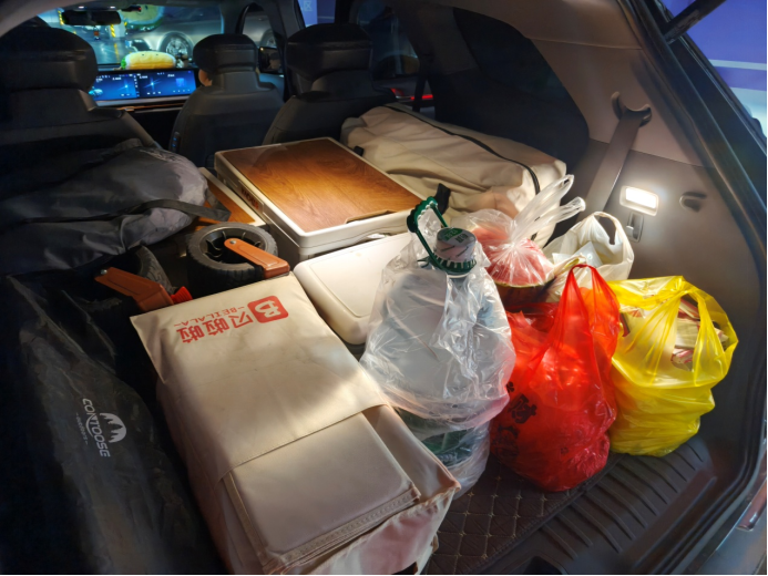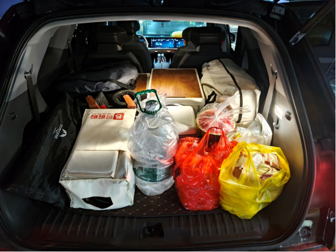 满满一后备箱吃的用的,为我们的户外计划做足了准备,
