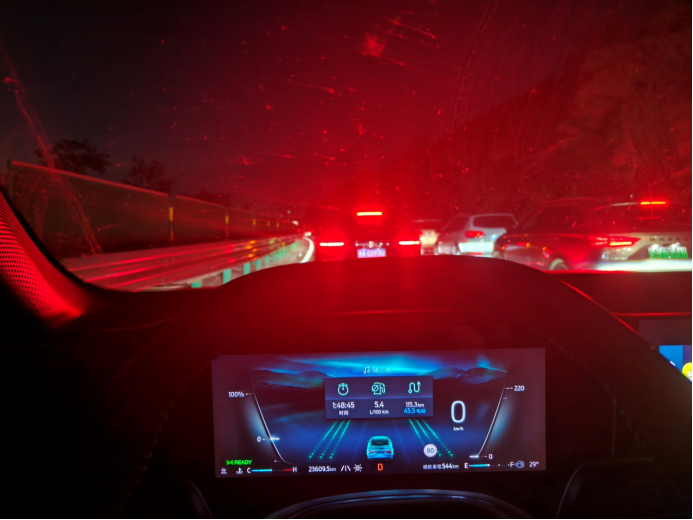 再次回到我们的城市,已经是晚上了,进入市区有点堵车,但越是堵车,锐界L混动的油耗就越低,我心里就越开心,省油就是省钱,省钱就是省心啊