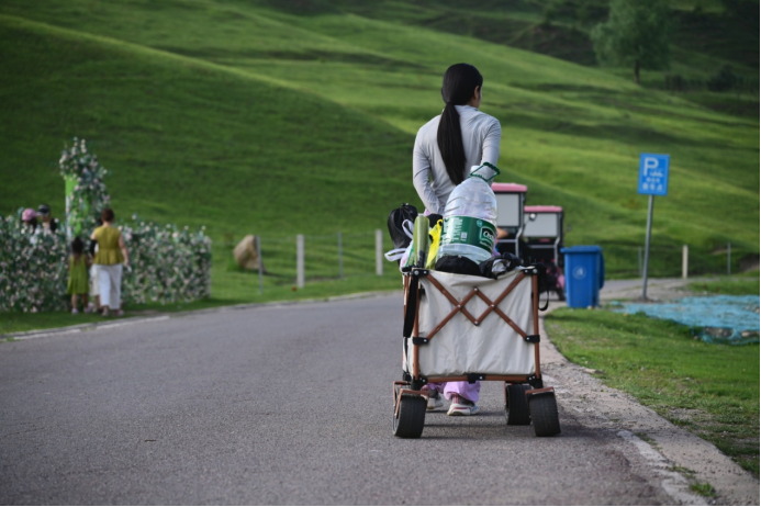 一边走,一边玩,一家人嘻嘻哈哈的,轮流着拉露营车 ,很快就找到了一处完美的露营地