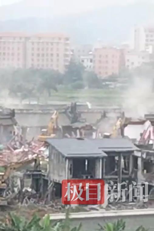 极目新闻——耗资上亿元的违建豪宅被拆除,多台挖机正在作业,官方回应