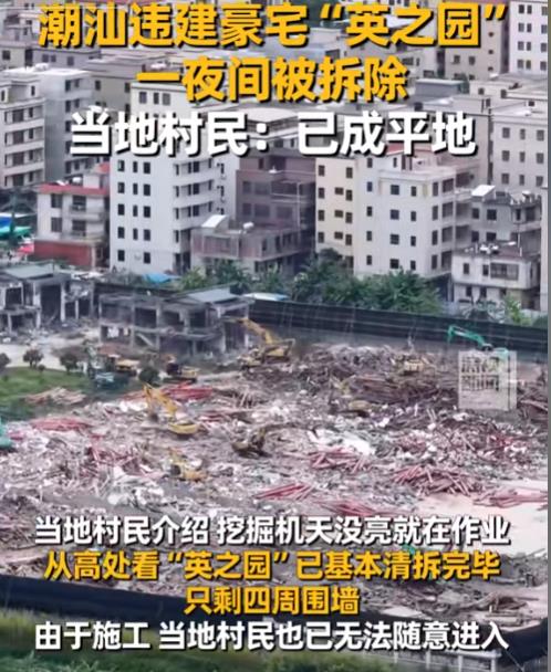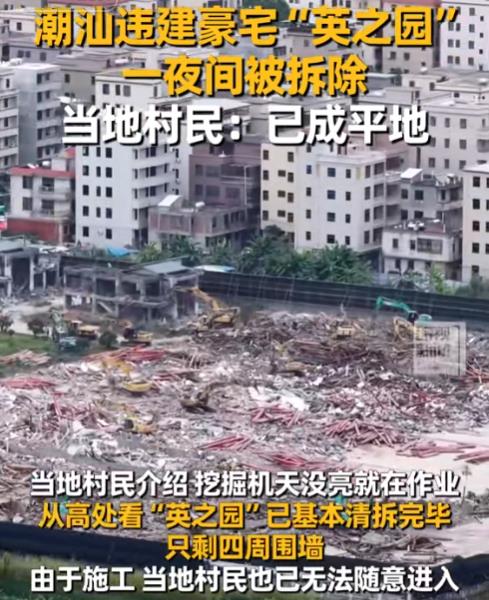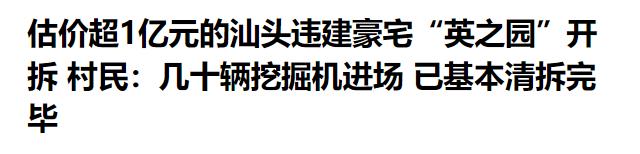 红星新闻——估价超1亿元的汕头违建豪宅“英之园”开拆 村民:几十辆挖掘机进场 已基本清拆完毕