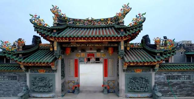 英之园用的是潮汕传统的“驷马拖车”格局,这种样式在当地本来就少见,关键人家还盖得特别豪华,园子正中间是陈氏祠堂,远远看过去,金光闪闪,气派得不行。