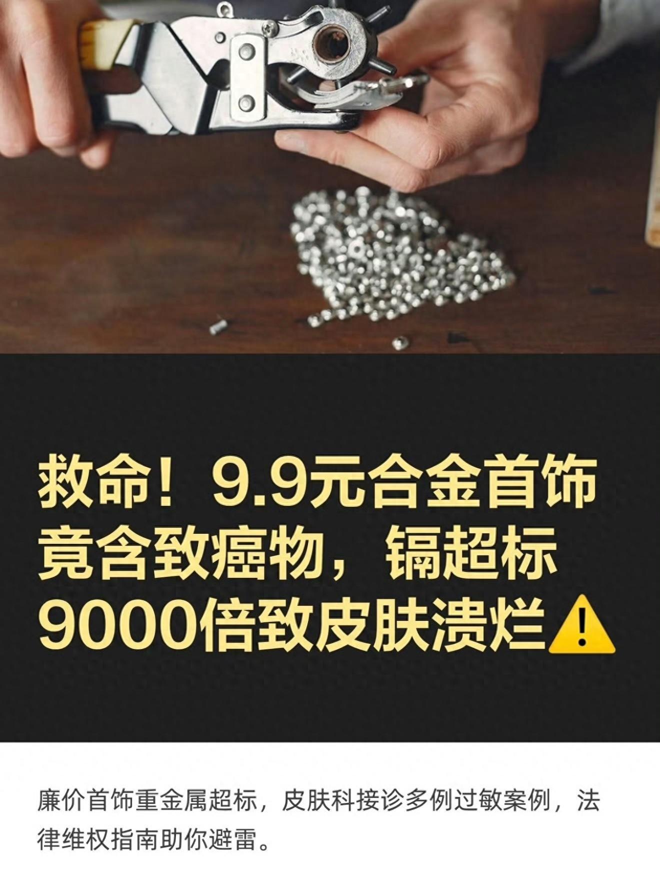 近日发布的廉价首饰重金属超标,镉超标9000倍导致皮肤溃烂,含有致癌物。来源:CCTV法治在线而来自于CCTV法治在线发