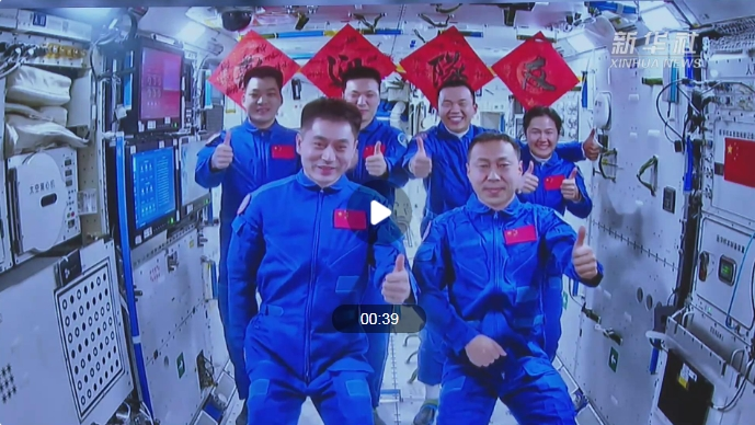 北京时间2024年10月30日12时51分,在轨执行任务的神舟十八号航天员乘组顺利打开“家门”,欢迎远道而来的神舟十九号航天员乘组入驻中国空间站,“70后”“80后”“90后”航天员齐聚“天宫”,完成中国航天史上第5次“太空会师”。随后,两个航天员乘组拍下“全家福”,共同向牵挂他们的全国人民报平安。