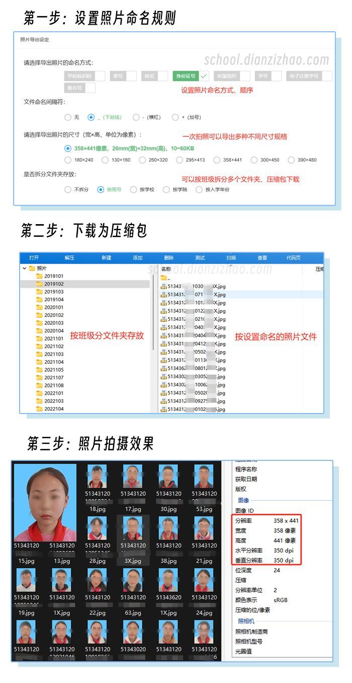 a.照片文件以身份证号命名(需与学籍网中身份证件号一致),应按学校标识码_学校名称分文件夹存储。