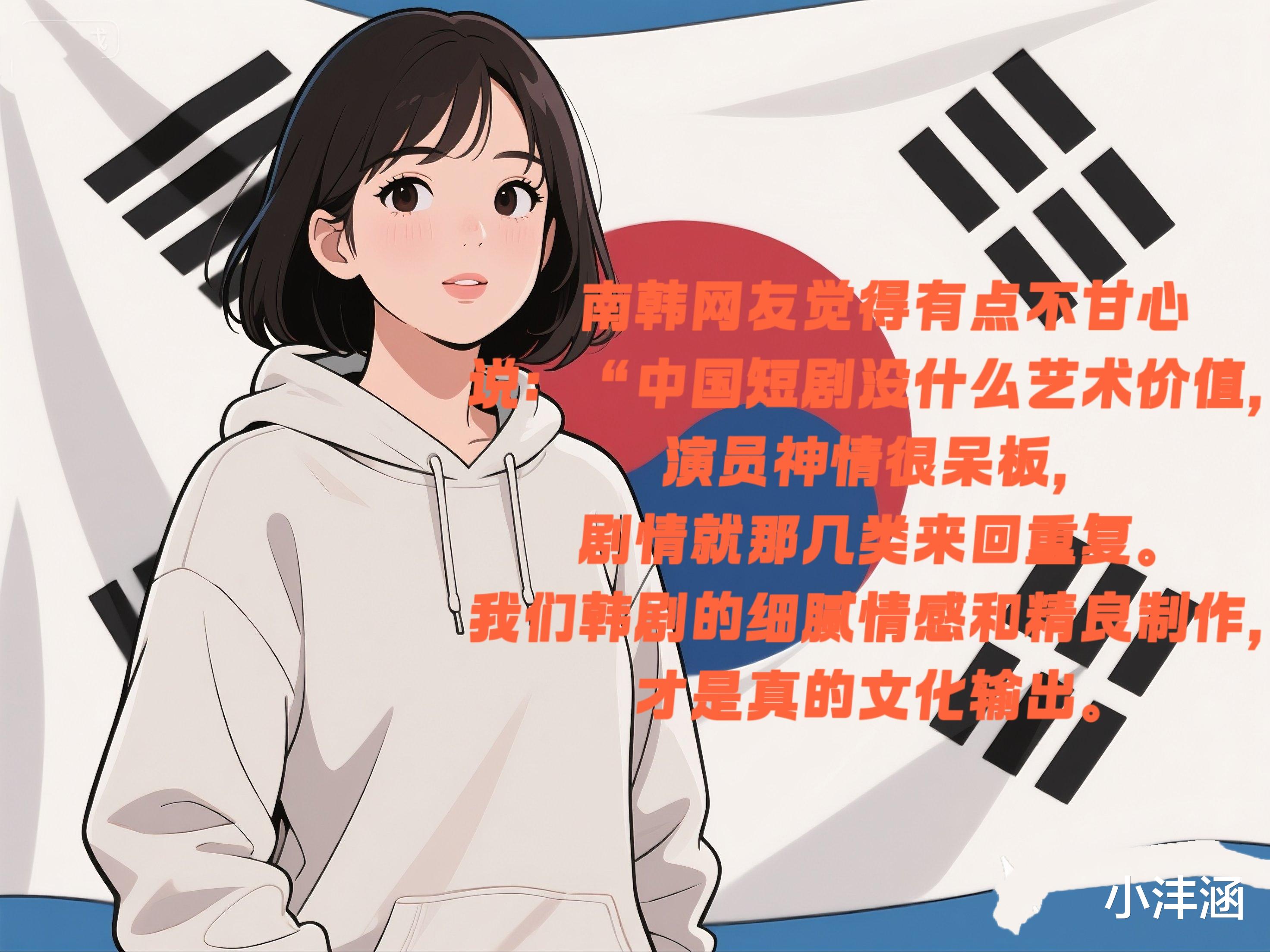 南韩网友觉得有点不甘心,说:“中国短剧没什么艺术价值,演员神情很呆板,剧情就那几类来回重复。我们韩剧的细腻情感和精良制作,才是真的文化输出。”