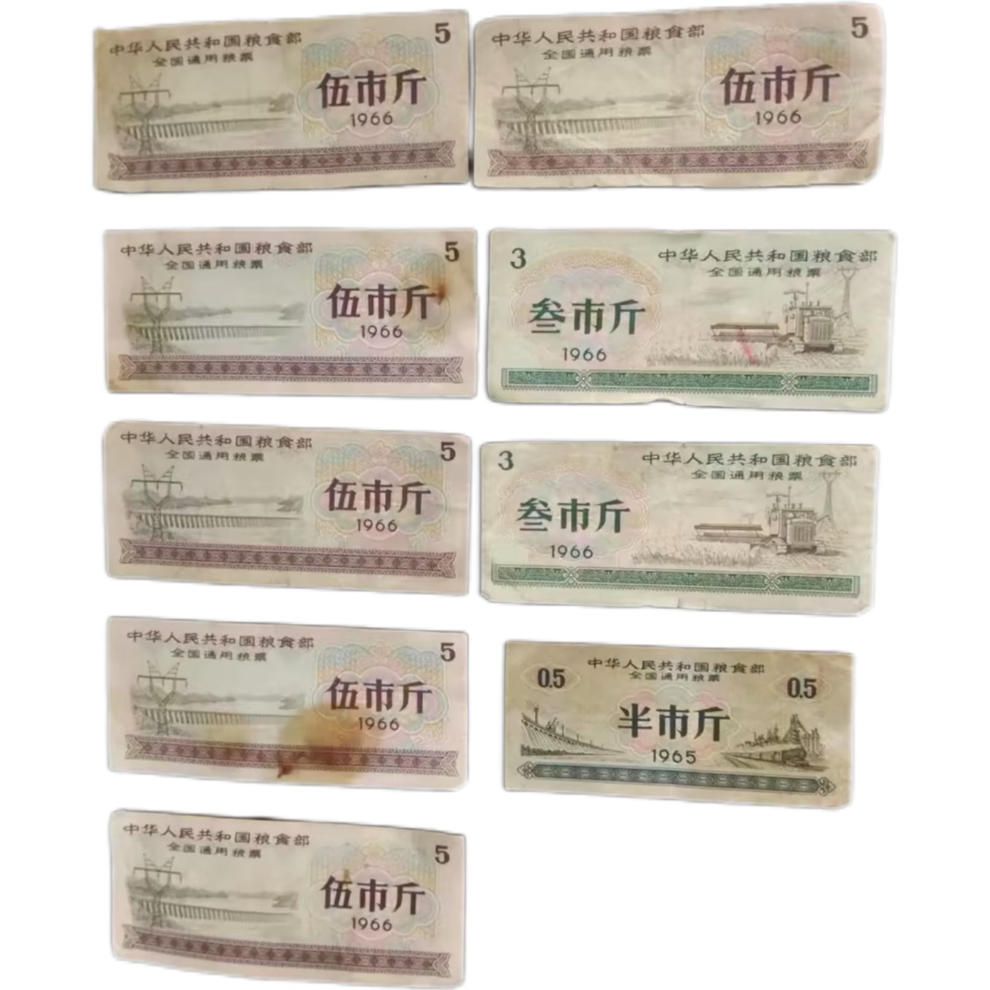 从材质特性来看,1966 年粮票采用的 1960 年代薄棉纤维纸,本身就存在 “易损、易逝” 的属性,再叠加时代变迁中 “搬家丢弃、火灾水灾、人为损坏” 等意外因素,能保持 “票面清晰、无大面积破损、印刷细节可辨” 的成套粮票,已成为票证收藏中的 “孤品级” 存在。这种极端稀缺性直接推高其市场溢价,使其从普通旧票证跃升为历史文物级藏品,为长期价值增长奠定坚实基础。