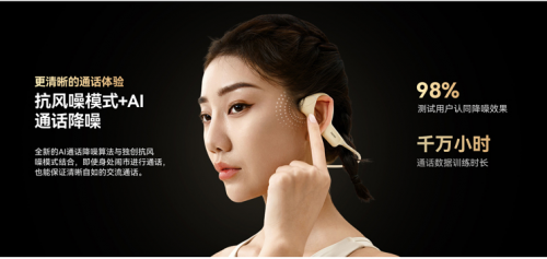 同时针对运动用户对高速运动场景下风噪的诟病,做了很多优化,也是国内首款支持物理降风噪的运动耳机。