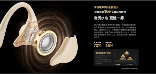 音质升级:自研第4代響科技专利,震感减少35%,振动效率提升至70%以上,全频段音质提升至90%,媲美入耳式耳机的清晰度与层次感。