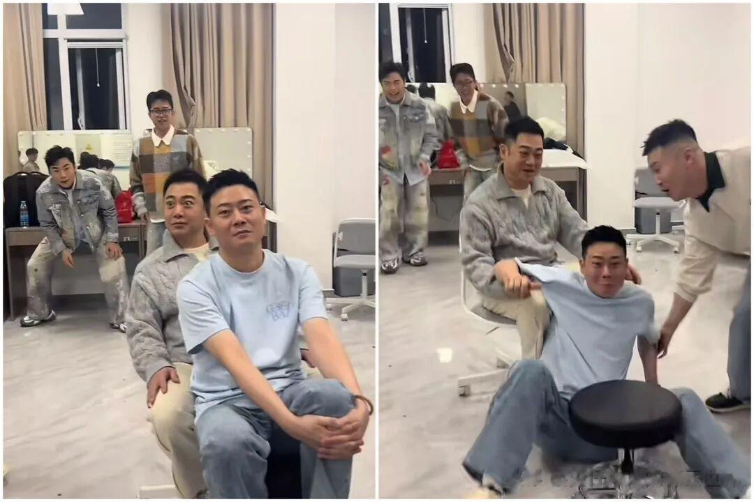 这不,这四位在后台玩起了冰上运动,让栾云平、孔云龙当冰壶。