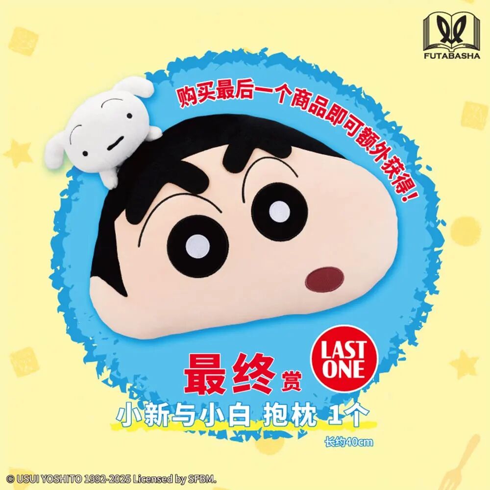 最最重磅的是,购买最后一个商品,还能额外获得Last 赏 —— 小新与小白抱枕!这个长约 40cm 的抱枕,把小新和小白的 “萌点” 直接叠满:小新睁着大大的眼睛,一脸呆萌,头上还趴着软乎乎的小白,仿佛下一秒就要和你贴贴。