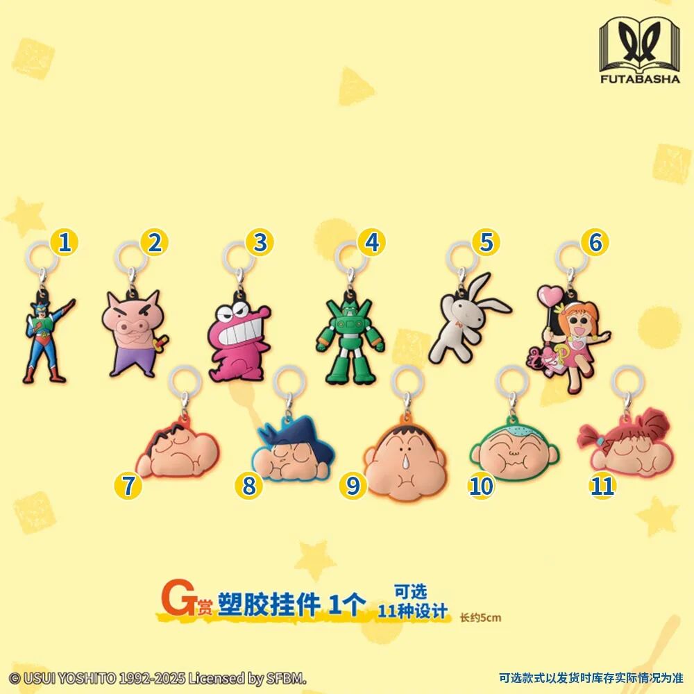 G 赏一口气推出11 种塑胶挂件,直接把春日部的 “名角儿” 们都搬来了:动感超人、肥嘟嘟左卫门、小新各种搞怪表情…… 每一款都萌到心坎里。