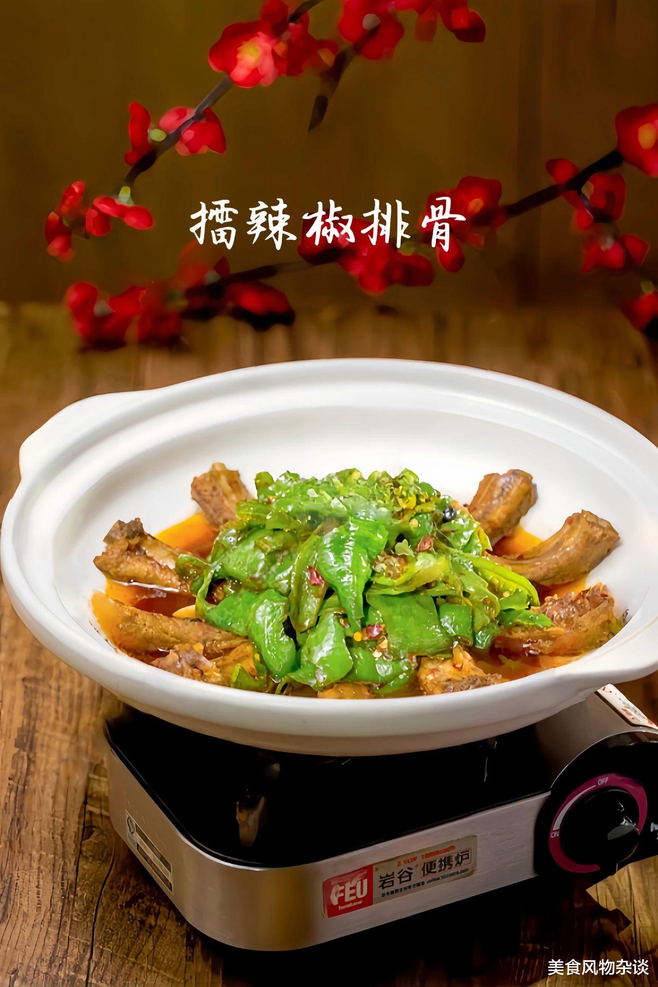 将焦香排骨与擂辣椒的烟熏辣感融合,排骨外焦里嫩,辣椒软烂带虎皮,蒜香与辣味渗透肉缝,口感层次丰富。