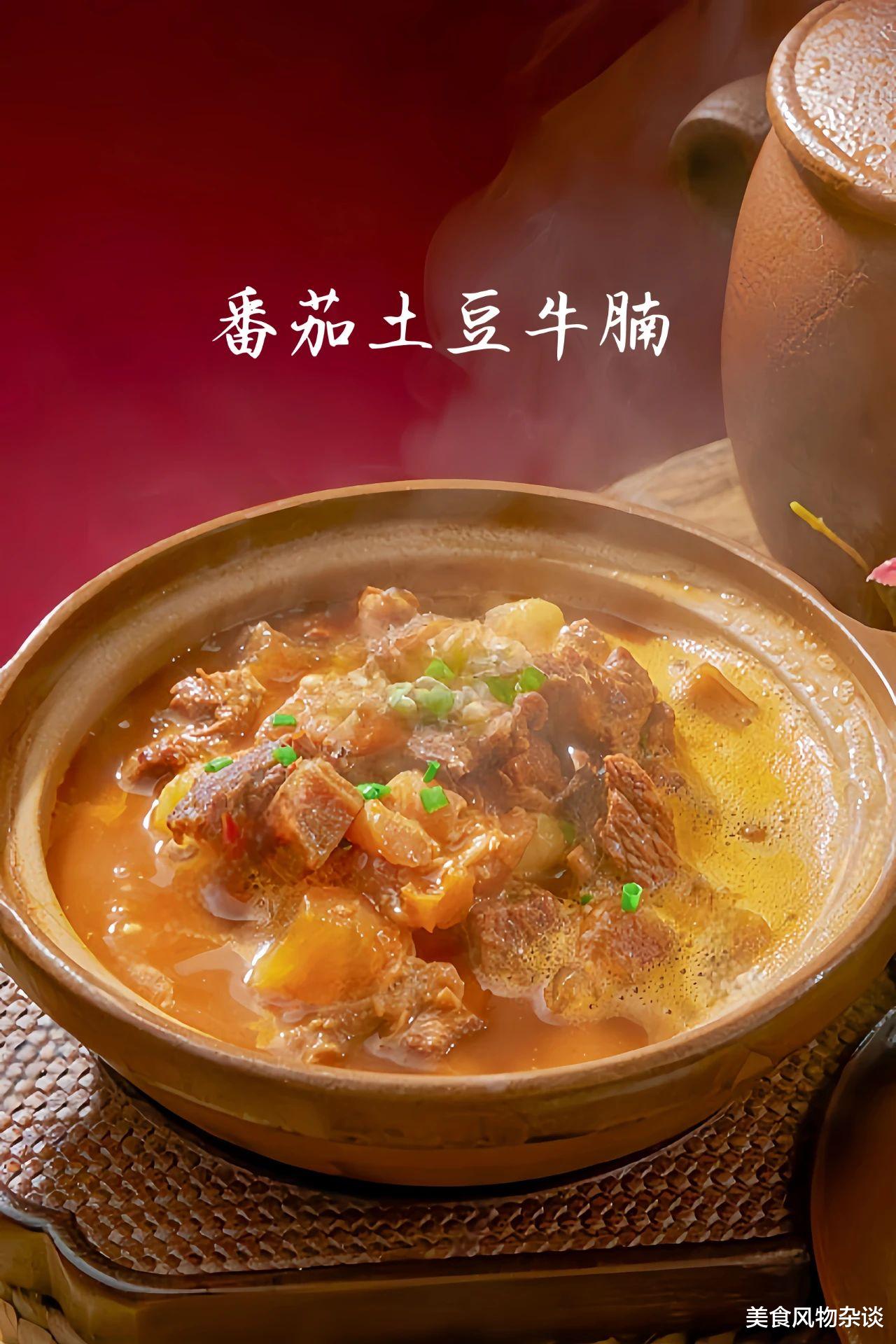 牛腩慢炖至软烂入味,番茄炒出沙后形成浓郁酸甜汤底,土豆吸饱肉汁变得绵密沙糯。三者的结合既突出了番茄的鲜爽,又中和了牛腩的油腻,土豆的加入更增添了层次感。这道菜汤汁浓郁,肉质酥软,酸甜适中,夏可开胃、冬可暖身,搭配米饭更是一绝。