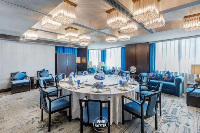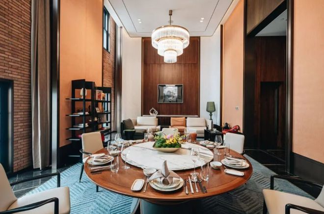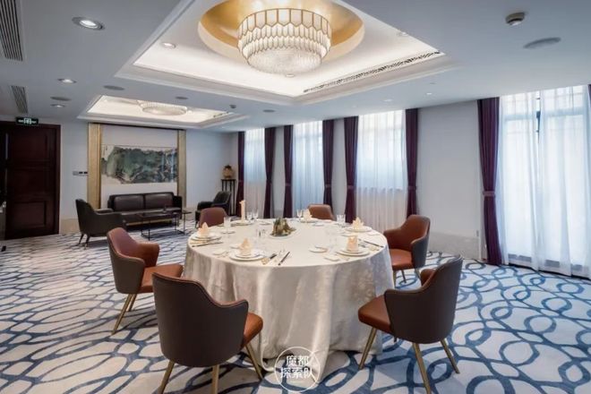上海兴国宾馆丽宫中餐厅内部装饰典雅,营造出一种宁静而雅致的氛围,桌上精致的瓷器也透露出温婉与细腻。