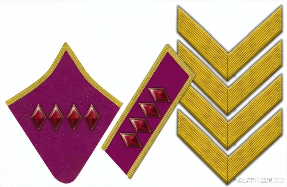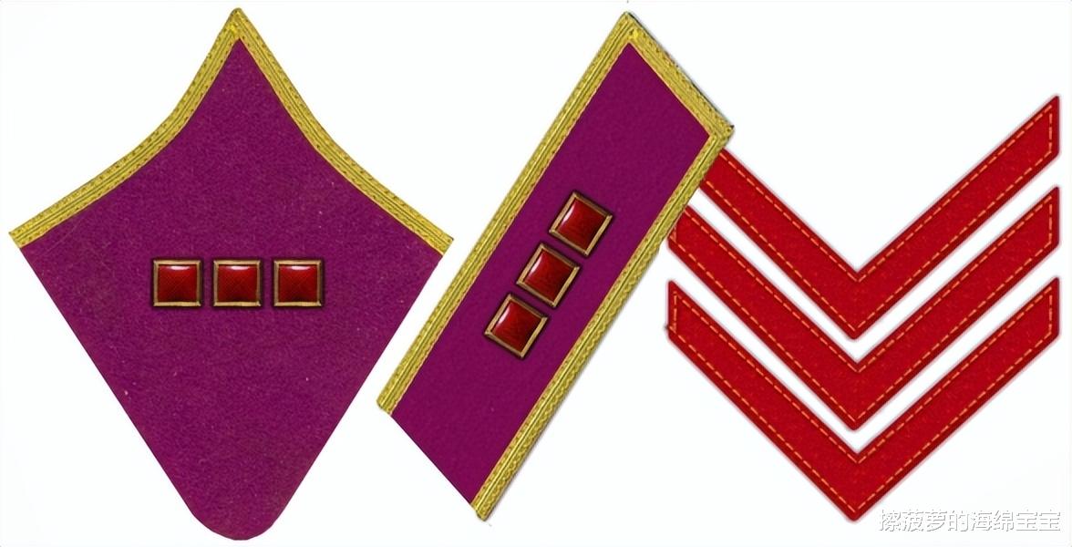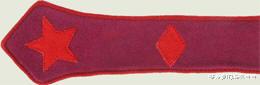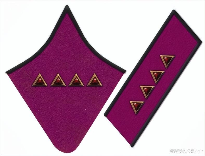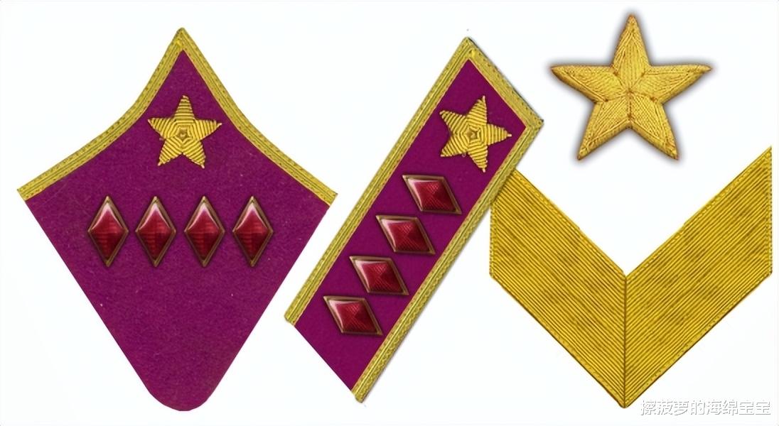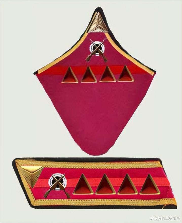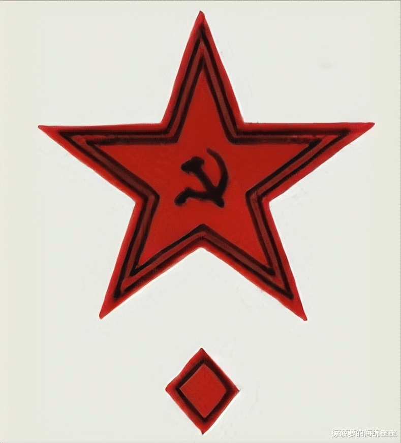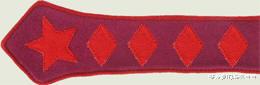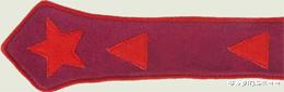 1918-1922根据1918年4月25日人民委员会的命令,成立了一个特设委员会,负责起草关于工农红军制服的建议。1918年11月29日全俄中央执行委员会批准了这些建议,并同意工农红军地面部队使用职务名称,职务标志为袖章类型,佩戴在左袖上,上面一个红色五角星,旅长及以上等级的红色五角星为两层黑边,旅长以下等级为单层黑边。红五星里面是镰刀锤子标志,下面用三角,方块和菱形数量代表等级。