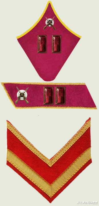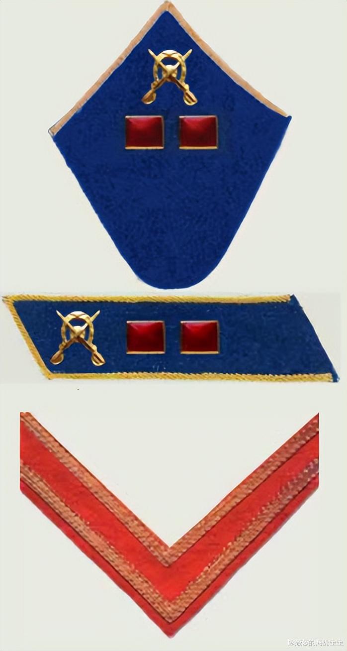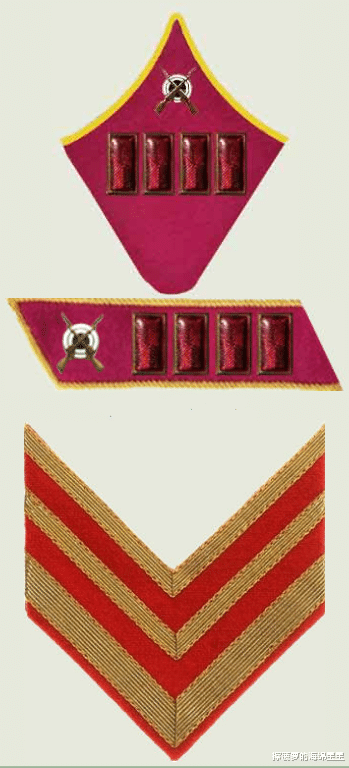 1922-1924随着内战结束,苏俄开始进行军队改革。苏俄共和国革命军事委员会在1922年1月31日颁布第322号法令,发布了新的制服,禁止非官方制服。职务徽章也进行了改革,所有职务徽章佩戴在衣服两个袖子的一个长18厘米,宽5厘米的布制袖章上。所有军种的袖章都用红色镶边,上面有一颗红色五角星。袖章底布颜色按兵种划分: