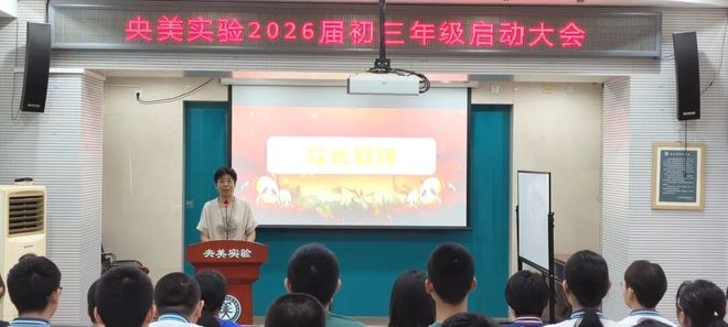 2025年8月30日,央美实验学校初三年级隆重举行了以“跨越书山万仞、奔赴热血初三”为主题的启动大会。本次会议旨在借助新学期开学前的关键契机,对即将步入毕业年级的同学们进行思想动员和教育激励,鼓舞士气、树立远大目标,帮助学生客观审视自我、明确方向与要求,更快适应毕业年级节奏,以积极饱满的状态投入紧张而充实的初三生活。校区主管李晓迅携教学干部及初三全体教师出席会议,年级组长王雪川老师担任主持。