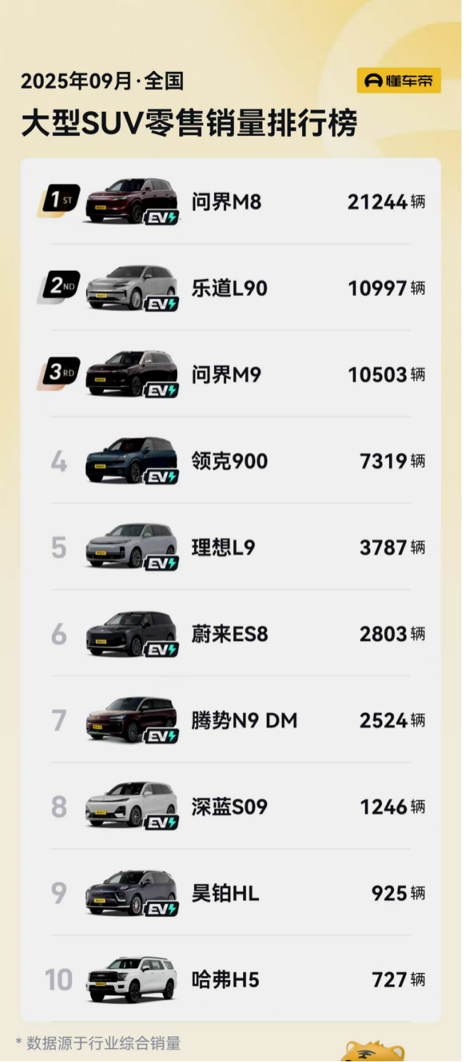 近日,懂车帝发布了2025年9月大型SUV零售销量排行榜,广汽昊铂HL位列榜单第九,成功跻身该细分市场前十。值得一提的是,这也是昊铂HL增程版正式开启交付后的首个完整月度销量表现,环比交付量实现大幅增长,展现出强劲的市场动能与用户认可。