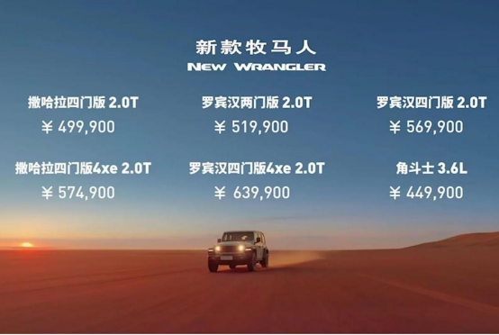 7月24日,2024款Jeep牧马人正式上市,新车共推出5款配置车型,售价区间为49.99-63.99万元。2024款角斗士共推出一款车型,售价为44.99万元。作为年度改款车型,新车整体与老款车型保持一致,但针对部分外观细节和车内配置进行了优化升级,使整车看上去更加时尚。