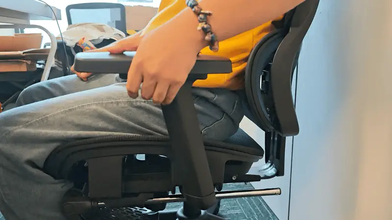 S9 Pro的腰部支撑走的是“大面积、柔和托住”的路线。腰靠尺寸偏大,接触面积充足,坐下后腰背不会出现明显空档,自适应结构能随着坐姿变化微调贴合位置。它不是那种强顶腰的感觉,而是持续把腰部托住,久坐时压力分散得比较均匀,对日常办公、长时间伏案的人比较友好。