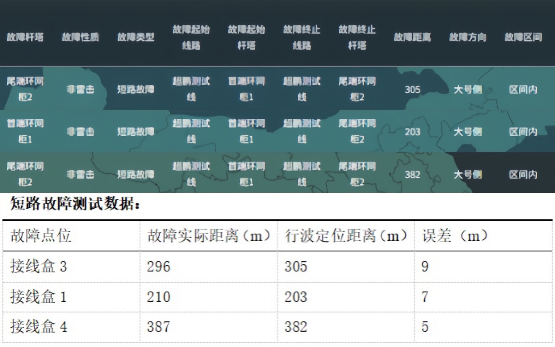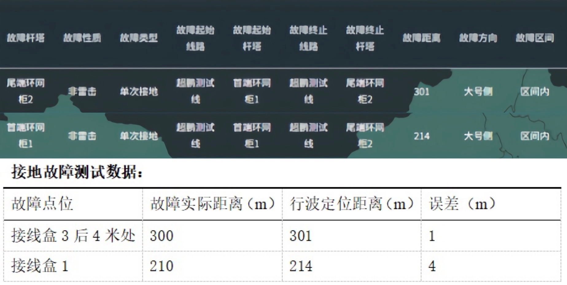 2.测试结果:故障类型识别准确,无漏判误判,定位误差小,完全满足现场运维排查需求。