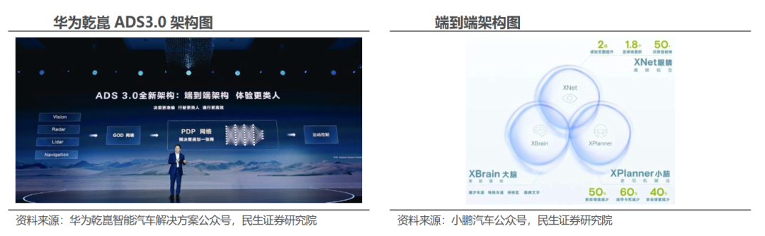 模块化端到端方面,2024年4月华为发布设计为“GOD感知网络+PDP决策网络+本能安全网络”的乾崑ADS3.0架构,采用三网协同的端到端大模型,通过GOD提供无损感知数据、PDP进行拟人决策、本能安全网络兜底应急的策略,形成“感知-决策-安全”闭环。
