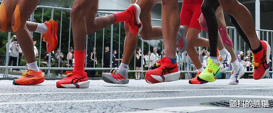 世界各国参赛选手多数穿着高回弹厚底跑鞋。近年来,围绕跑鞋使用率,各厂商的研发竞争日趋激烈。