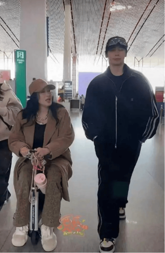 有网友看后,猜测钟丽缇的体重,可能已接近180磅。照片中钟丽缇正踩着电动行李箱向前滑行。