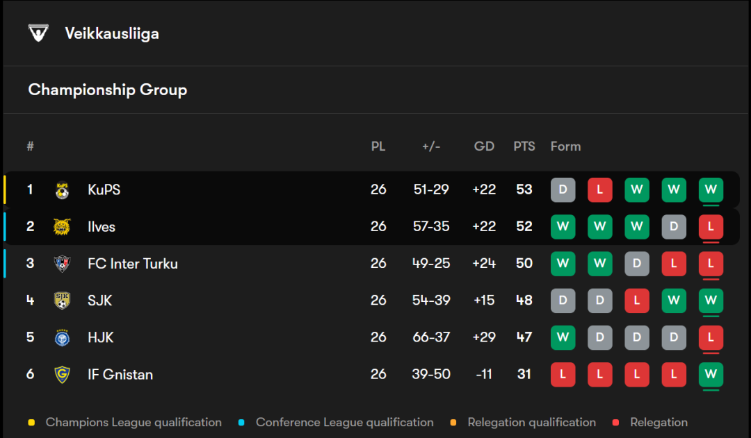 芬超争冠附加赛已经进行至第三轮,目前库普斯积53分排名第1,坦山猫积52分排名第2,分差仅有1分,这场比赛对于双方来说都是关键的六分大战,两队都不会轻易丢失机会,都有着强烈的争冠战意。