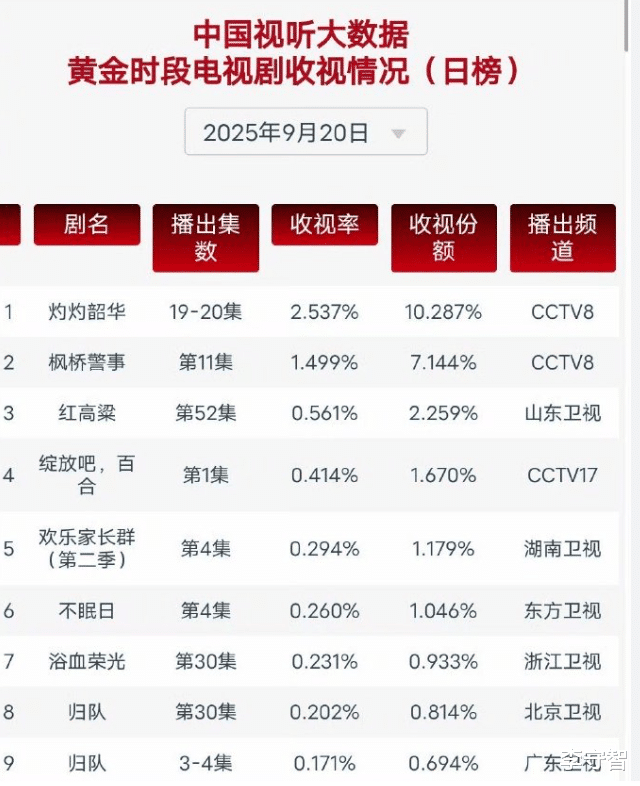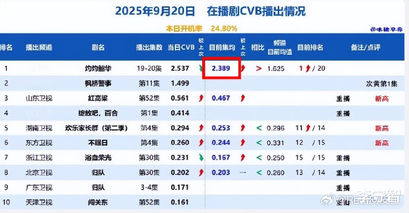 此前《生万物》以精彩的剧情一路领跑,成了央八三年收视之冠,本以为稳坐2025央八年冠之位,结果《灼灼韶华》霸气逆袭,首播峰值破2.8%,直接拿下全国收视第一。截至目前,《灼灼韶华》集均CVB达2.427%,超越《生万物》的2.388%,暂列央八2025年收视年冠。
