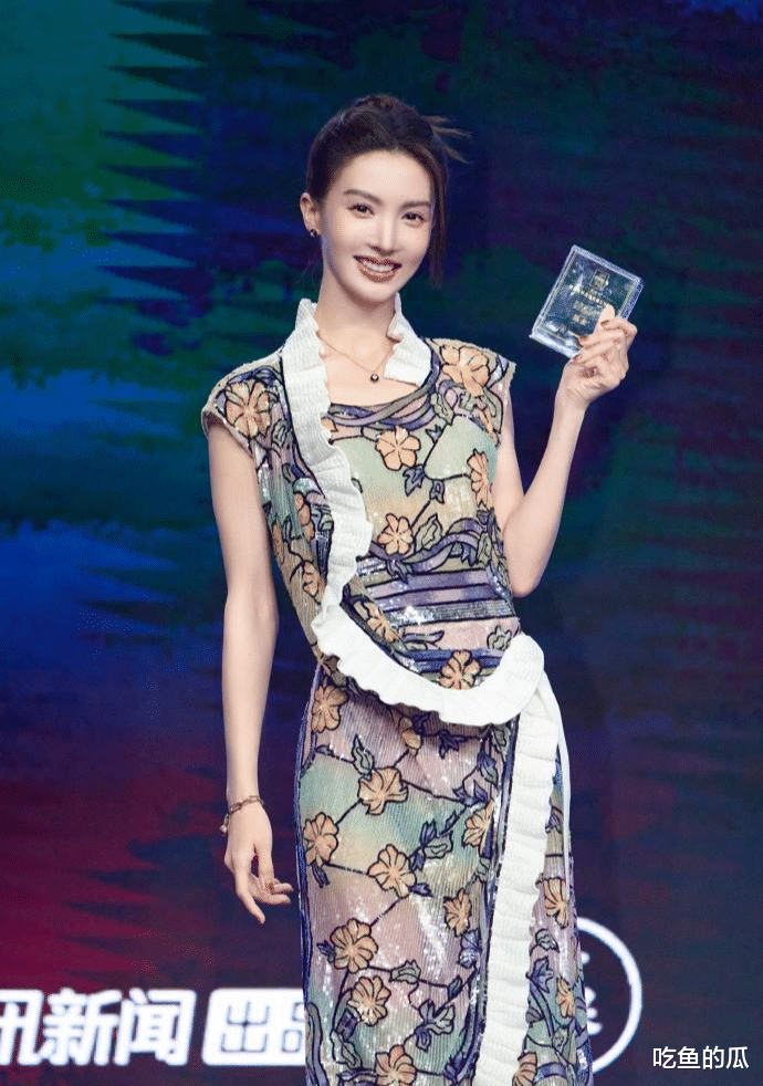 她身穿的连衣裙虽然很耀眼,但裙身上有许多复杂的印花,有一种“老成”的美,让人看着眼花缭乱。