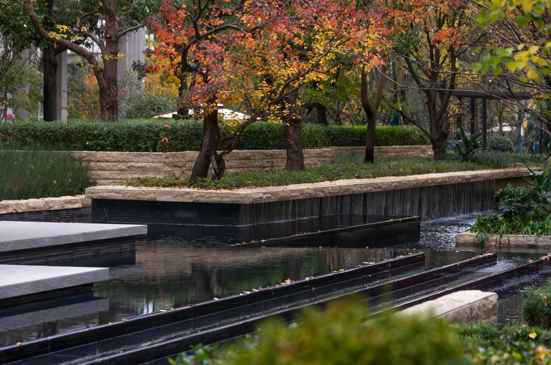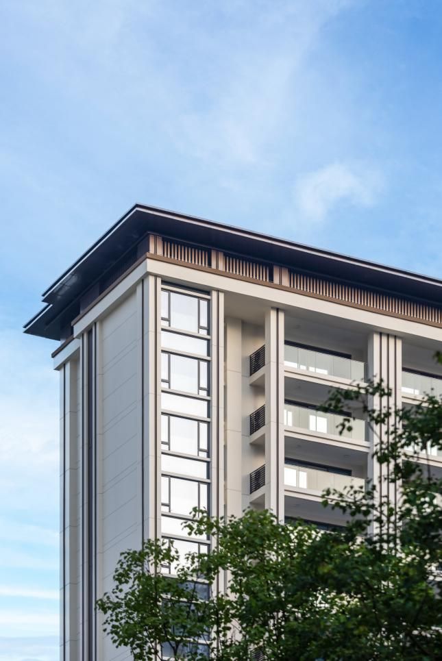 漫步小区,更加发现项目打造的细节和诚意。例如,在辽阔的中庭园林之中,大范围使用全冠、高大树种,这样的移植难度更大,成本造价更高,甚至超过部分高端项目的园林用材。