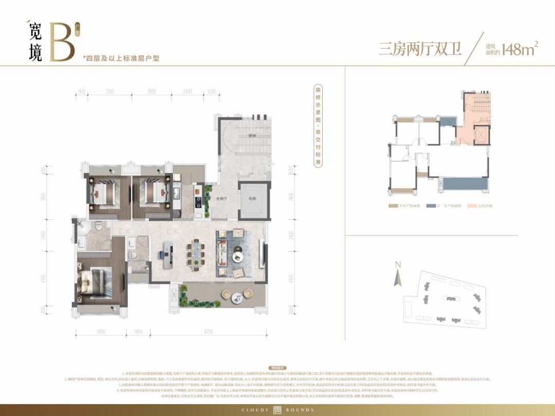 ◎ 天府·光华云境建面约148㎡户型装修示意图