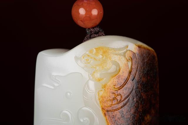瓦当龙 龙行天下 红皮籽料和田玉 仿古玉雕