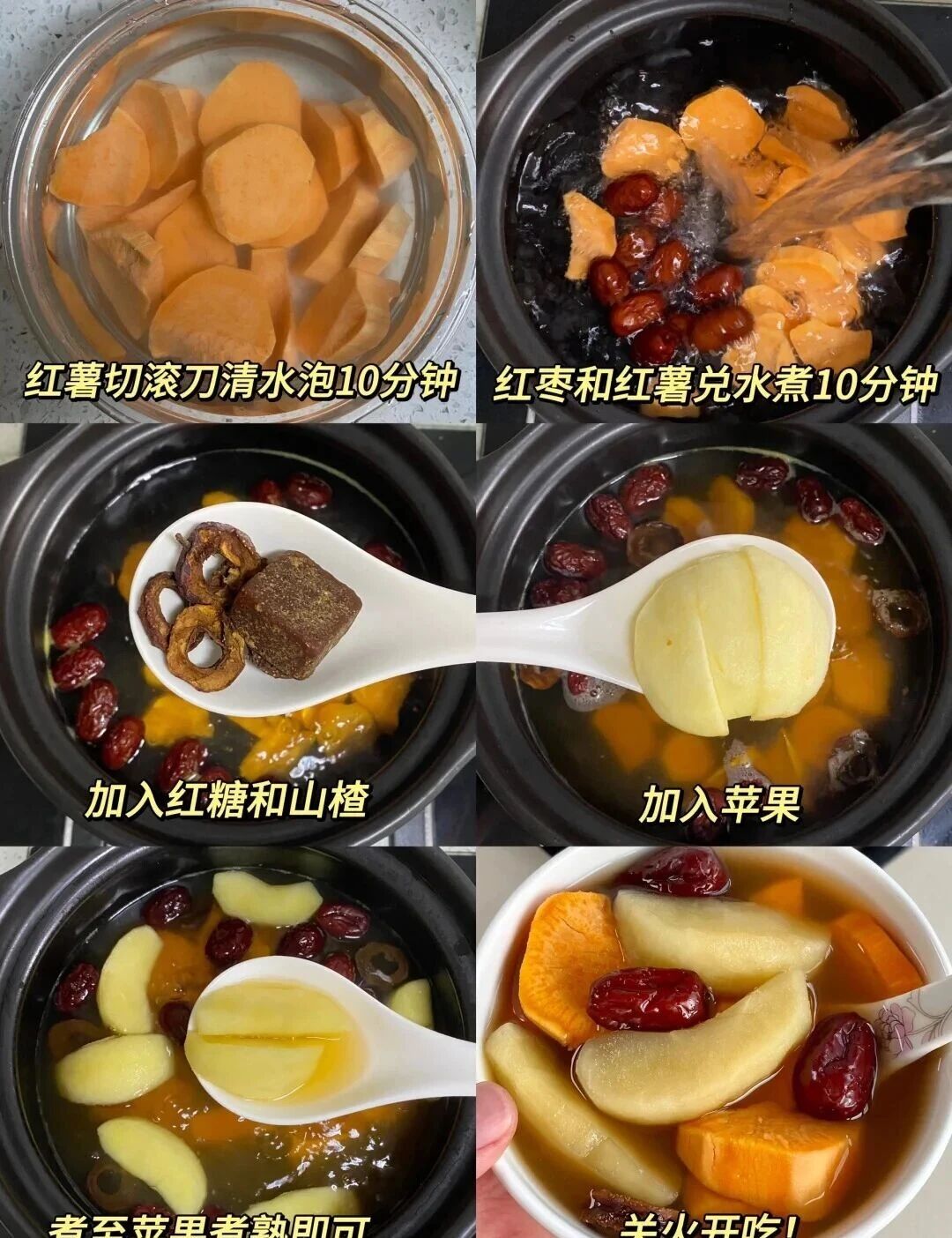 3. 加入红糖、山楂和苹果块,继续煮至苹果熟透即可。