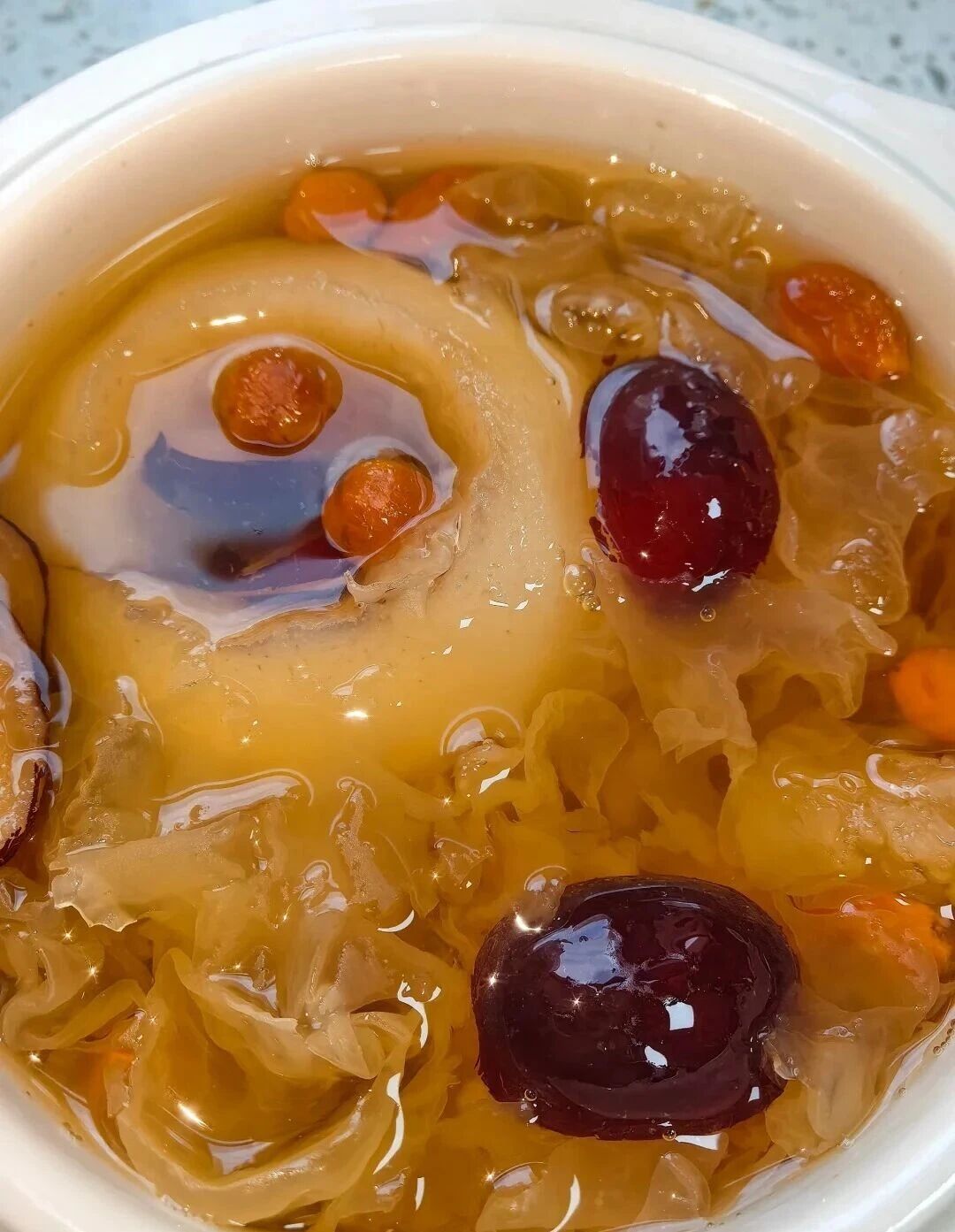 3. 隔水慢炖2小时至银耳胶质析出即可。