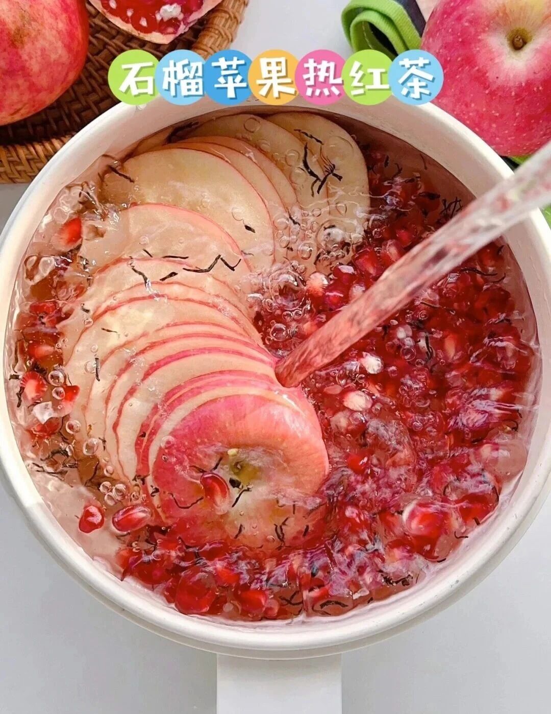 1. 苹果洗净切块(不去皮),石榴剥出果肉。