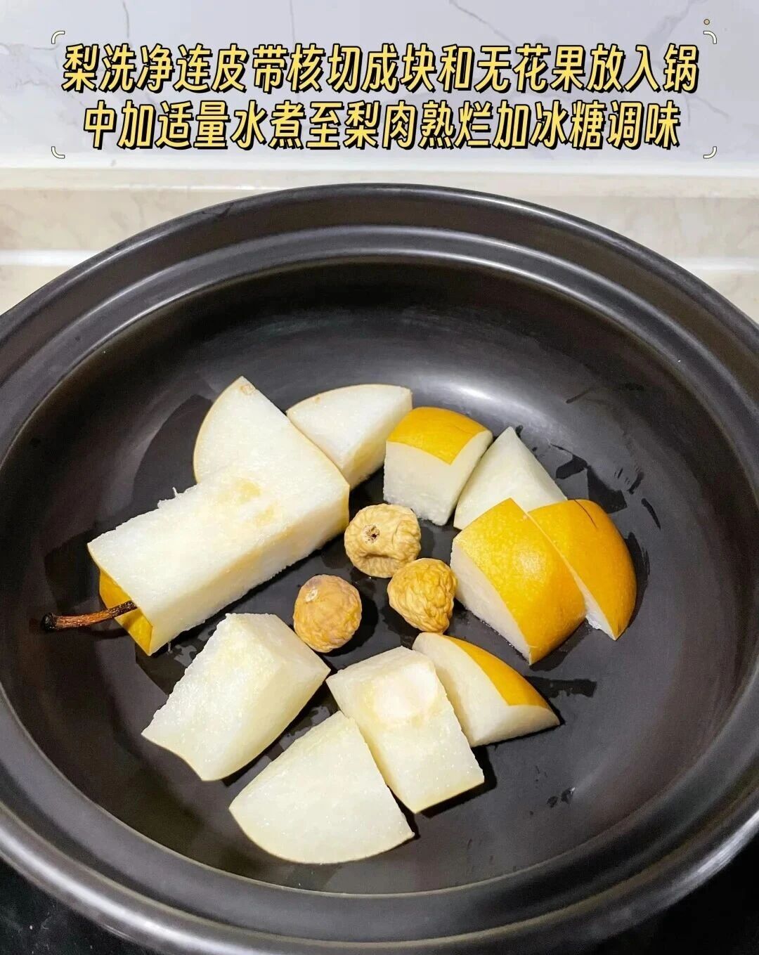 秋梨1个、新鲜无花果3-5个(或干无花果6-8个)、冰糖适量